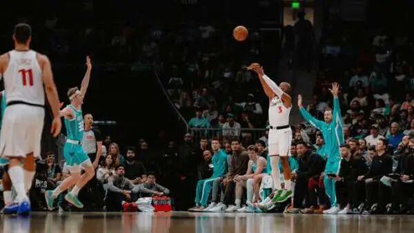 首节命中5记三分砍下平生涯纪录的27分,全场10记三分追平个人生涯纪录,这也是他生涯第4次单场轰进10记三分,次数超越了JR·史密斯,独占历史第四。