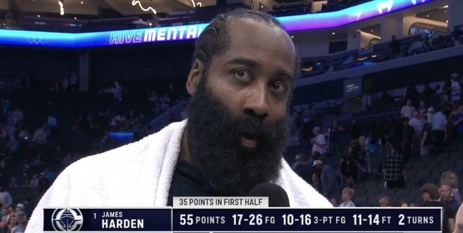 这是哈登生涯第12次单场砍下55+,高居历史第二,仅次于张伯伦72次,这又是吹张二万的一天…