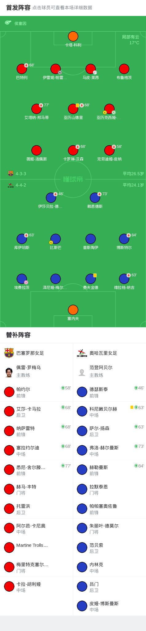 巴萨女足3-0大胜继续领跑女足欧冠,普特利亚斯点射破门
