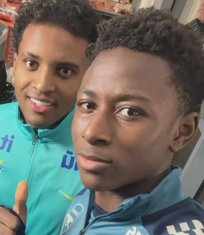 此外阿森纳u16后卫Hakeem Abubakar还和罗德里戈合影留念。