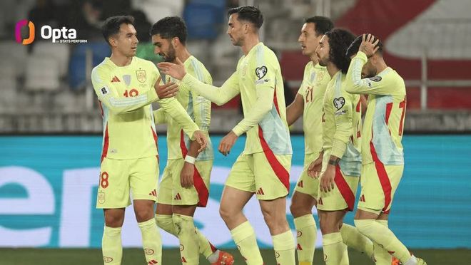 自德拉富恩特上任以来,巴斯克双雄在国家队地位飙升,已经成了西班牙国家队最大的兵源地之一:毕竟,他老人家球员时代就有在巴斯克地区打拼的经历,到了执教西班牙国家队的时候,他自身的战术理念,跟巴斯克双雄的球风也有相似之处,选择“自家人”进入国家队其实并不难以让人理解。到了对阵格鲁吉亚的世界杯预选赛,没有巴萨的亚马尔和佩德里,德拉富恩特也是保持了对于巴斯克球员的倚重,本场比赛的首发名单里,有两个毕尔巴鄂竞技的球员,还有一个皇家社会的球员,梅里诺与苏维门迪这对效力于阿森纳的皇家社会双子星也拿到了首发机会。