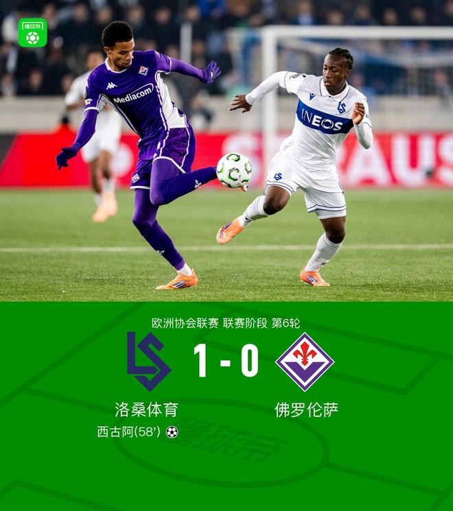 北京时间12月19日,欧洲协会联赛联赛阶段第6轮,洛桑体育迎战佛罗伦萨。比赛中,卡纳-比伊克送出助攻,西古阿头球破门为球队攻入制胜进球。随后莫伊塞-基恩获得绝佳单刀机会,未能打进且对门将犯规染黄。最终全场战罢,洛桑体育1-0战胜佛罗伦萨。