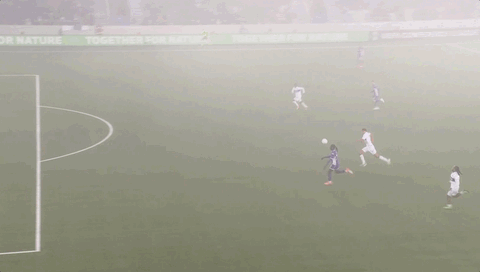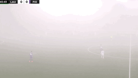 第40分钟,现场能见度极低,裁判暂时吹停了比赛